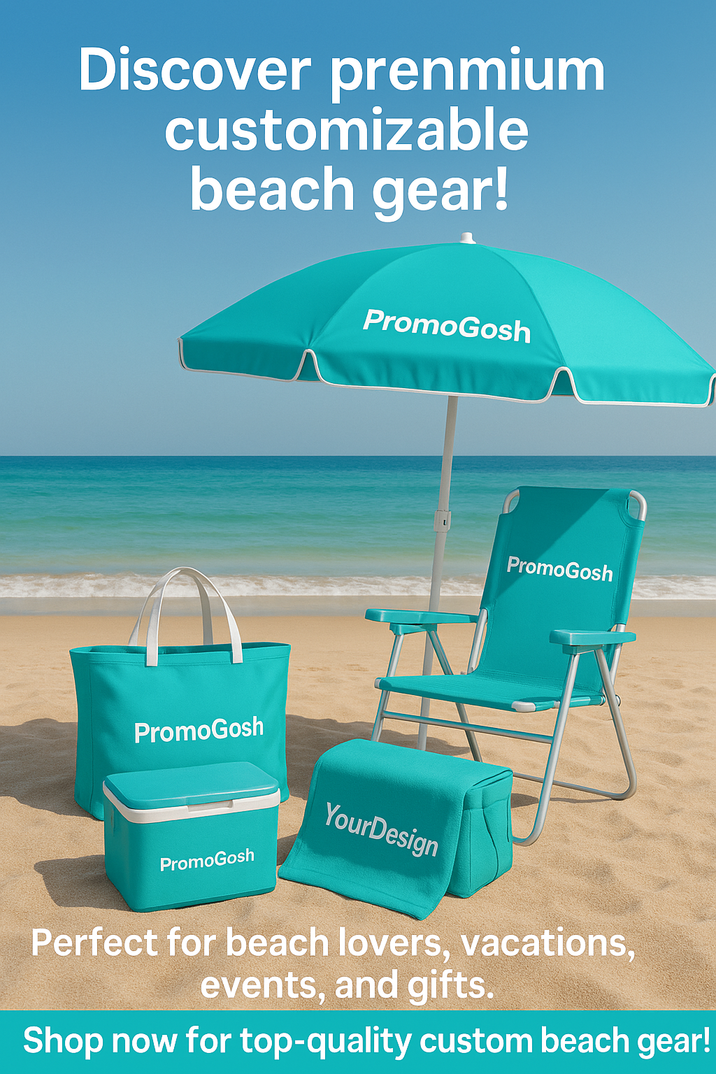 PromoGosh delivers top-quality, customizable beach gear for all your summer adventures. Personalize towels, chairs, umbrellas, bags, and coolers with your name, logo, or design. Whether you're heading to the beach, planning an event, or looking for the perfect gift, our customizable beach gear blends comfort, function, and style. Enjoy fast shipping, expert craftsmanship, and a smooth ordering process. Make your beach days unforgettable with unique, personalized gear. Shop now at PromoGosh.com for the best customizable beach gear at unbeatable prices!